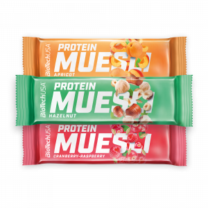 A Protein Muesli praktikus választás, ha energiapótlásra van szükség. A müzliszelet kiváló élelmirost-valamint fehérjeforrás, emellett vitaminokat és ásványi anyagot biztosít a szervezet számára, ízletes, szárított/aszalt gyümölcs vagy ropogós mogyoródarabok gazdagítják, így kínálva ínycsiklandó választást. A gabonaalapú szénhidrátok segítenek feltölteni a szervezetet, míg a fehérje hozzájárul az izomtömeg fenntartásához.